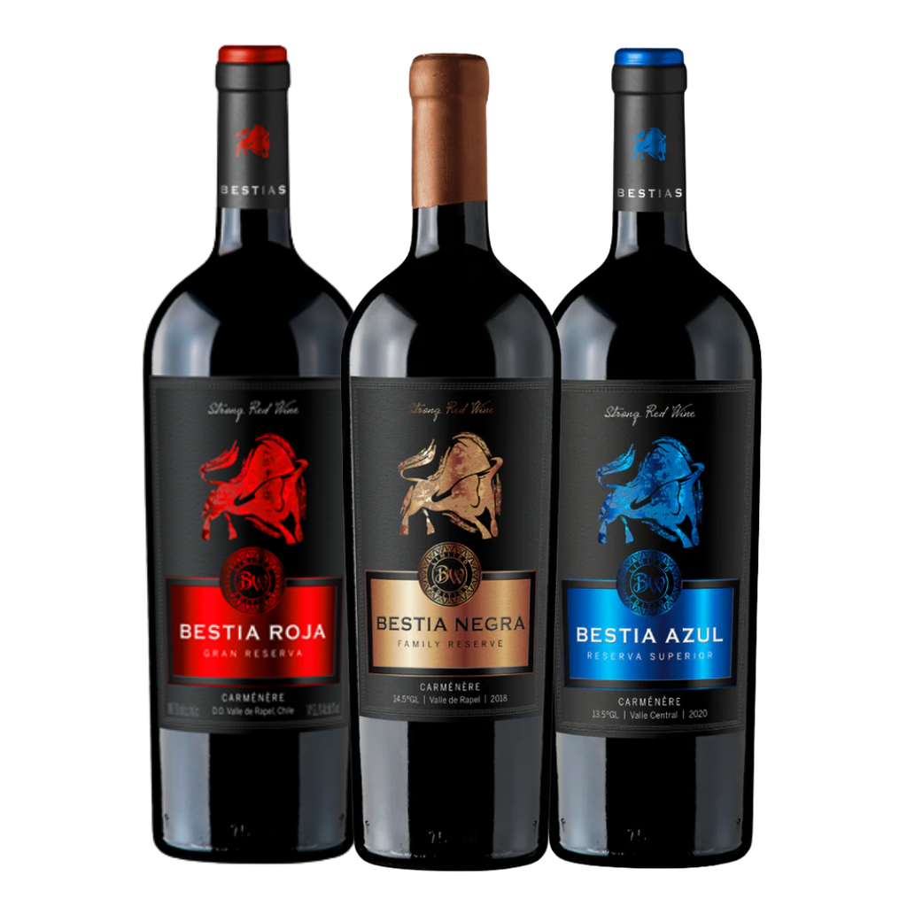 Tres expresiones, una sola experiencia. Este pack reúne Bestia Roja, Bestia Negra y Bestia Azul, una trilogía de vinos con carácter, intensidad y personalidad única, ideal para descubrir y disfrutar cada faceta de Bestia Wines.